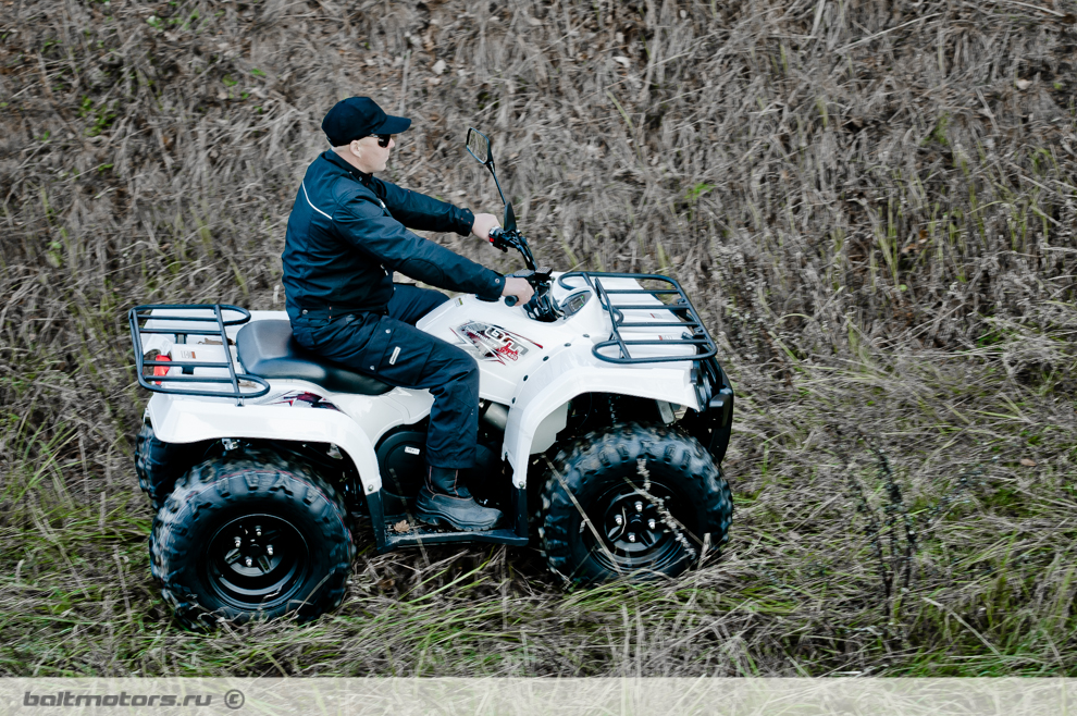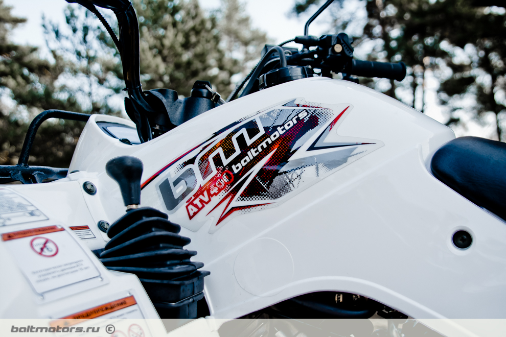 Самый доступный квадроцикл в линейке ATV Baltmotors. Эта машина является клоном легендарного Yamaha Grizzly 350 – простого, надежного и неприхотливого квадроцикла. Baltmotors ATV 400 EFI спроектирован с хорошим запасом прочности, рассчитан на тяжелую эксплуатацию, лишен сложных узлов, прост и недорог в сервисном обслуживании и ремонте, и может эксплуатироваться вдали от сервисных центров. Он оснащен современным 400-кубовым инжекторным двигателем, с жидкостным охлаждением, мощностью 27 л. с., автоматической вариаторной трансмиссией, дисковыми тормозами. Обладая малым весом, небольшими размерами и короткой базой, полным приводом и высокопрофильной 25-дюймовой грязевой резиной он справится с любым бездорожьем, удобен в эксплуатации в лесу, занимает мало места в хранении. Двигатель Baltmotors ATV 400 EFI экономичен, уверенно заводится в любых температурных режимах и в условиях высокогорья, обладает повышенной мощностью и крутящим моментом.